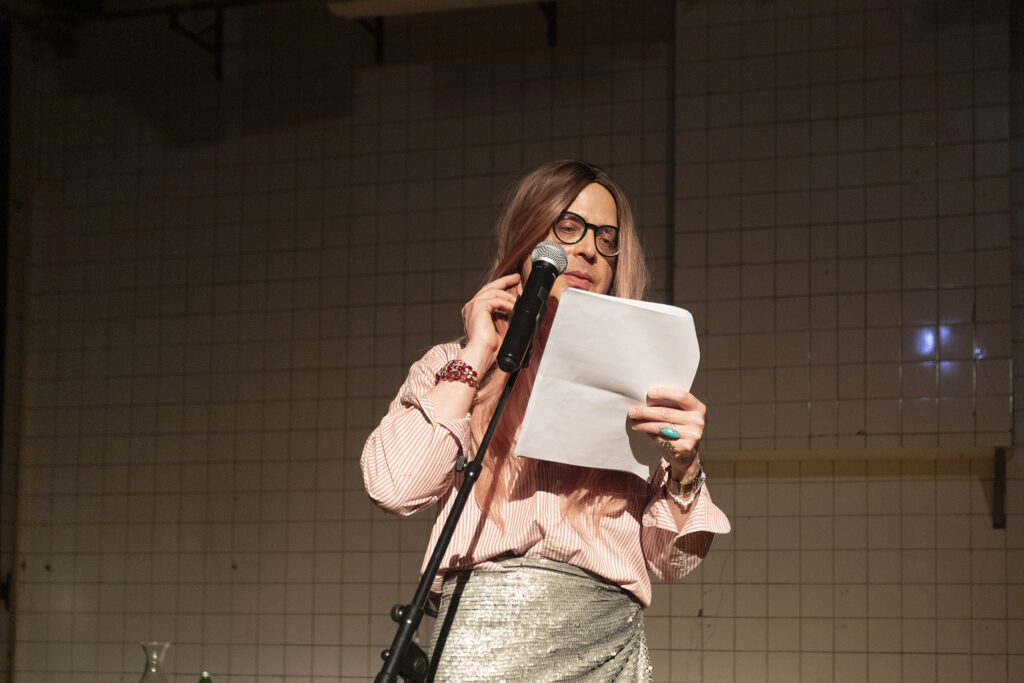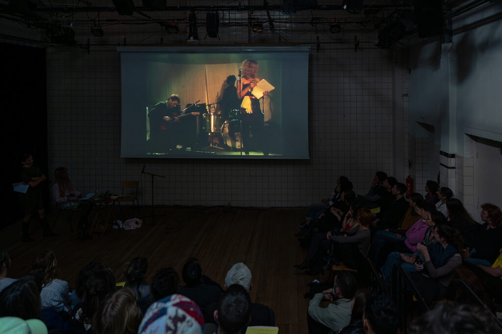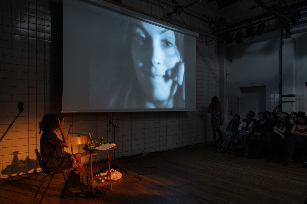 During the evening at Perdu, Sands and Billy embody each other’s language and show each other “how it’s done.” The program brings together materials and texts produced and gathered over the past months through an email correspondence. These include fragments of works by older generations of female artists from the US and Poland – Adrian Piper, Carolee Schneemann, Hannah Wilke and Małga Kubiak – that have been foundational to Sands and Billy respectively.